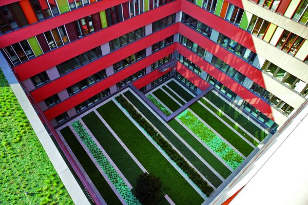 The Schauspielhaus was extensively greened with a 2,750 m² roof area.